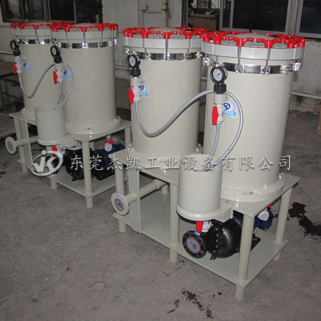 處理、金屬精飾、PCB蝕刻設備、制藥環保等,其主要作用是過濾化學溶液,能去除這些溶液中的不溶性顆粒雜質。過濾機是