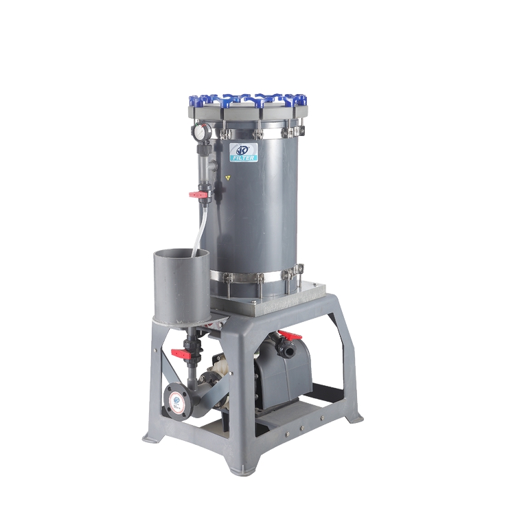 耐酸堿過濾機過濾機懸浮液中的固體顆粒大、粒度均勻時,過濾的濾渣層孔隙較為暢通,濾液通過濾渣層的速度較大。應用凝聚劑將微細的顆粒集合成較大的團塊,有利于提高過濾速度。