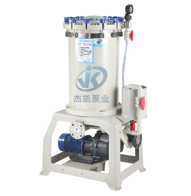 杰凱化學(xué)液過(guò)濾機(jī)使用范圍廣,被廣泛應(yīng)用于電鍍、表面處理、金屬精飾、PCB蝕刻設(shè)備、制藥環(huán)保等,其主要作用是過(guò)濾化學(xué)溶液,能去除這些溶液中的不溶性顆粒雜質(zhì)。