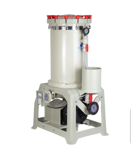 1.電鍍過濾機使用前先檢查出入口配管是否已裝妥,且將出入口管固定好在槽內,使出入口不易擺動。