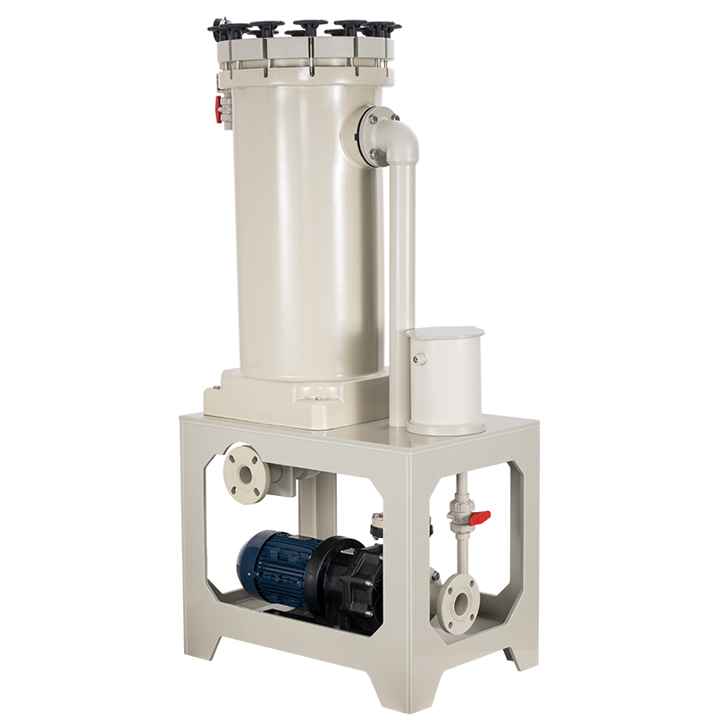 1、過濾機桶體采用優質PPH/PVDF 原生材料,提升耐腐蝕能性及結構強度。 2、配套PP 實板腳架,強度高,更結實,使用8-10 年不變形。 3、無金屬扣環+翻蓋設計,桶身排氣,操作便捷。緊固拉桿配套M12 螺桿,強度更高。 4、加厚桶一體成型設計,整機無焊接點,100%無泄漏,安全、省心。使用成本更低,使用壽命更長 5、配套多種款式濾材,滿足市場多種需求。 6、廣泛用于酸堿藥水,電鍍藥水,蝕刻液,清洗液過濾。